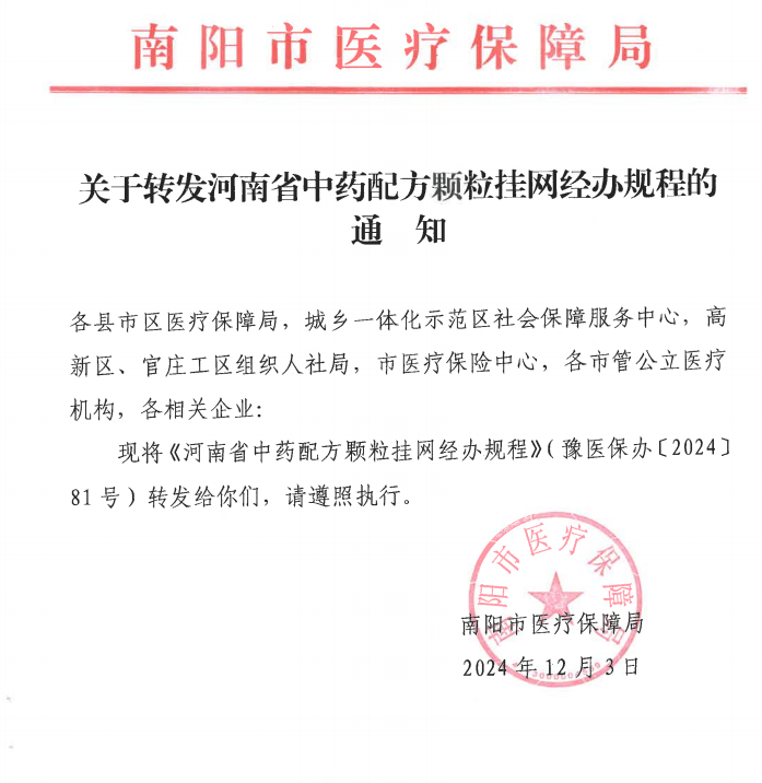 【南阳】关于转发河南省中药配方颗粒挂网经办规程的通知