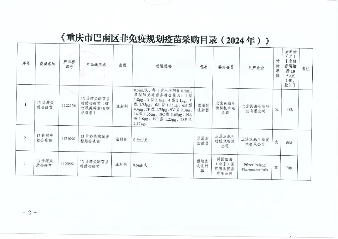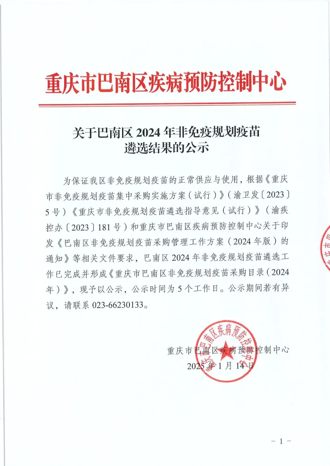 【重庆】巴南区2024年非免疫规划疫苗遴选结果的公示