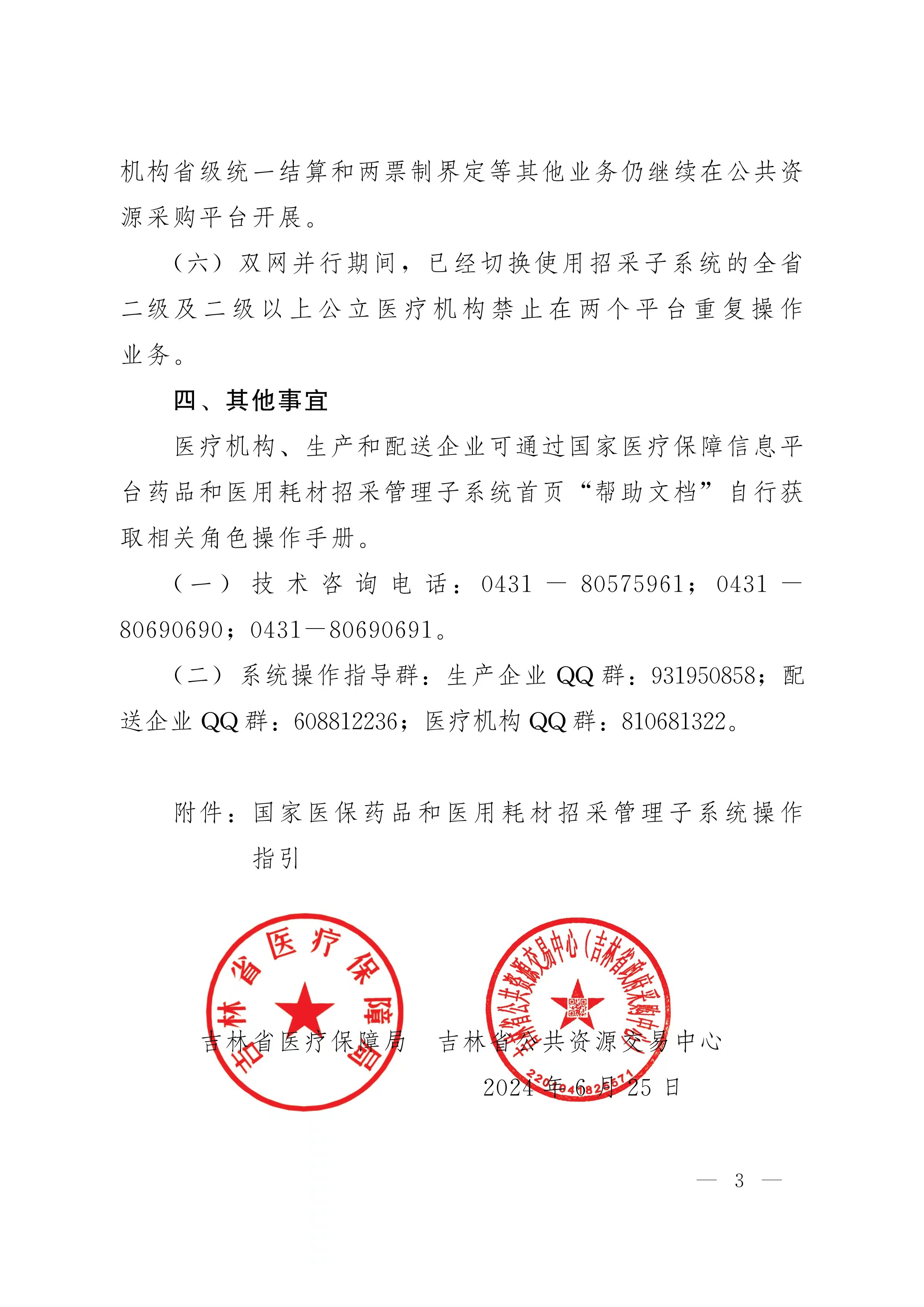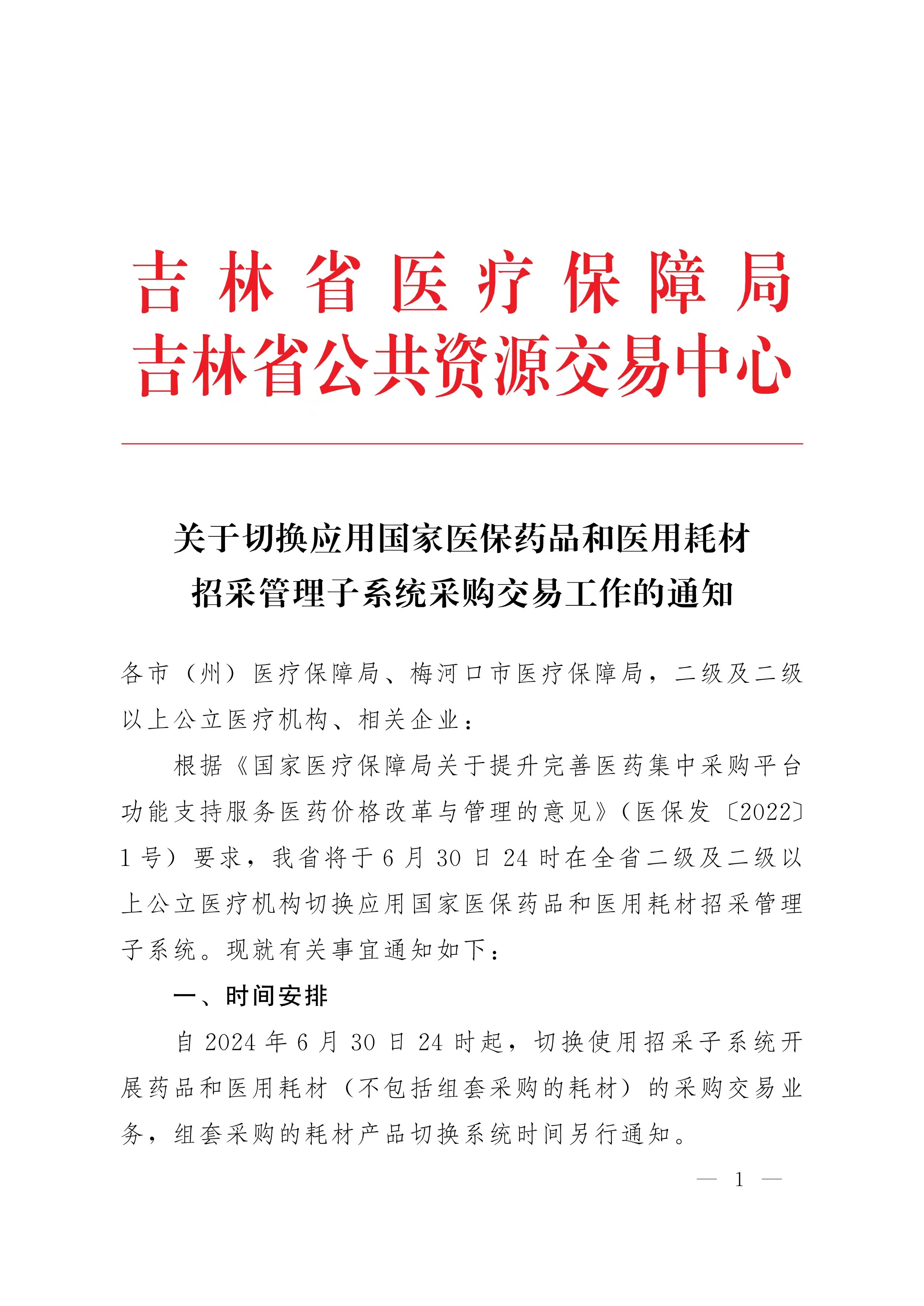 自2024年6月30日24时起,切换使用招采子系统开展药品和医用耗材(不包括组套采购的耗材)的采购交易业务,组套采购的耗材产品切换系统时间另行通知。