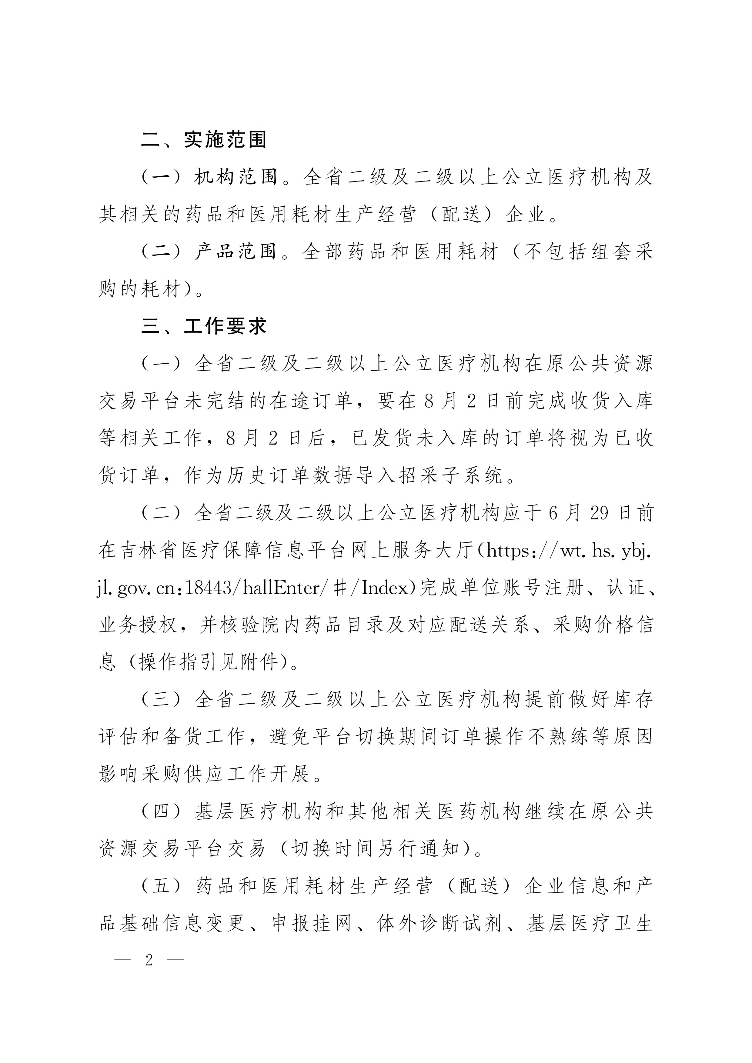 (二)全省二级及二级以上公立医疗机构应于6月29日前在吉林省医疗保障信息平台网上服务大厅(https://wt.hs.ybj.