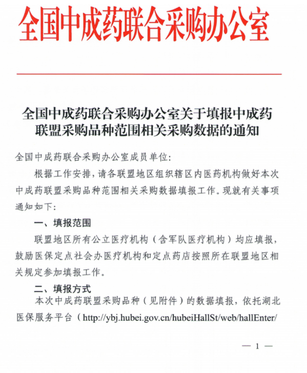 【全国】全国中成药联合采购办公室关于填报中成药联盟采购品种范围相关采购数据的通知