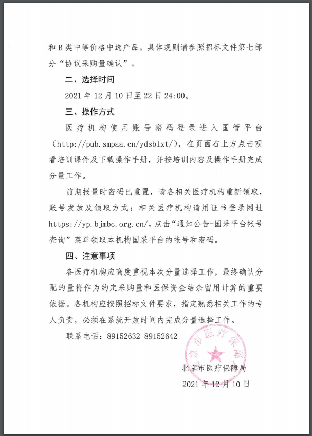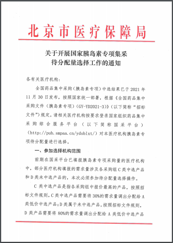 【北京】北京市关于开展国家胰岛素专项集采待分配量选择工作的通知