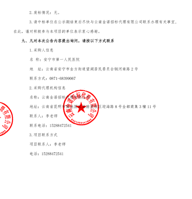 所属项目:云南省昆明市安宁市第一人民医院院