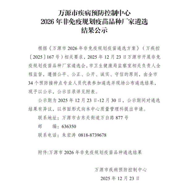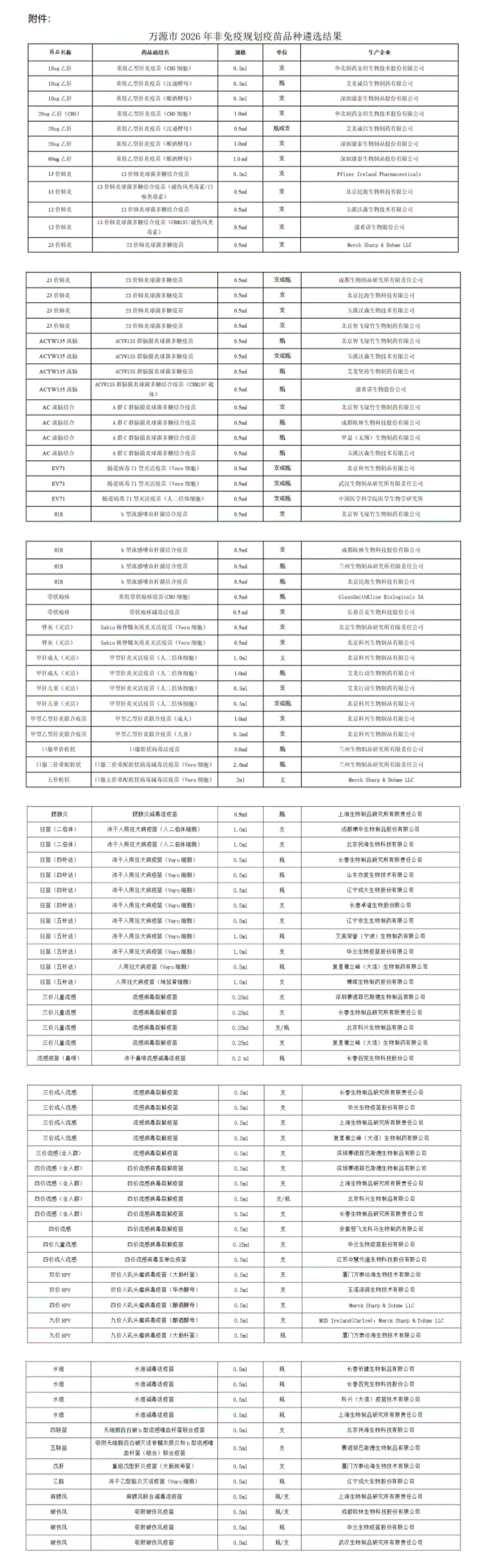 【达州】2026年非免疫规划疫苗品种厂家遴选结果公示