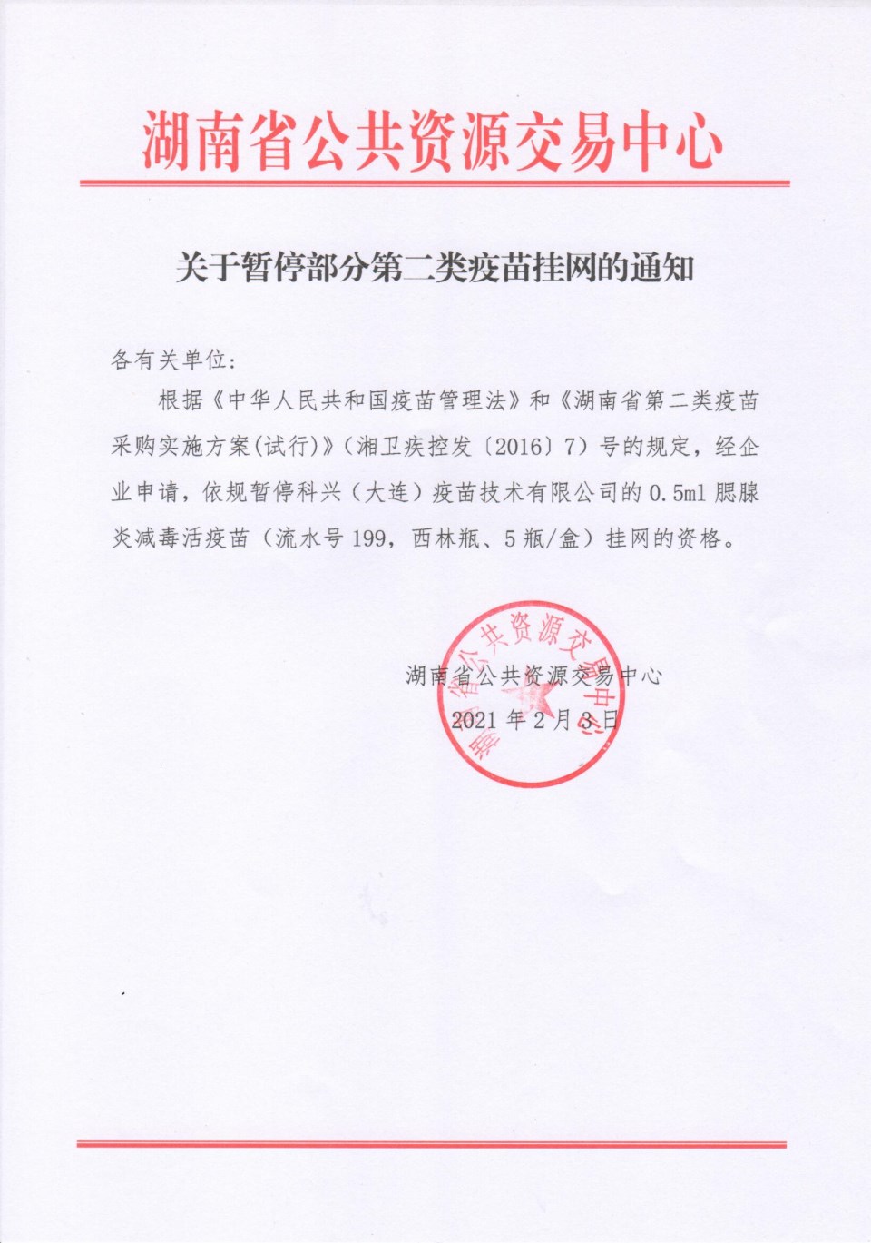 【湖南】湖南省关于暂停部分第二类疫苗挂网的通知