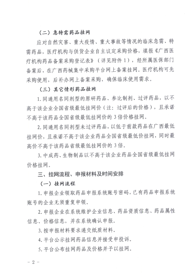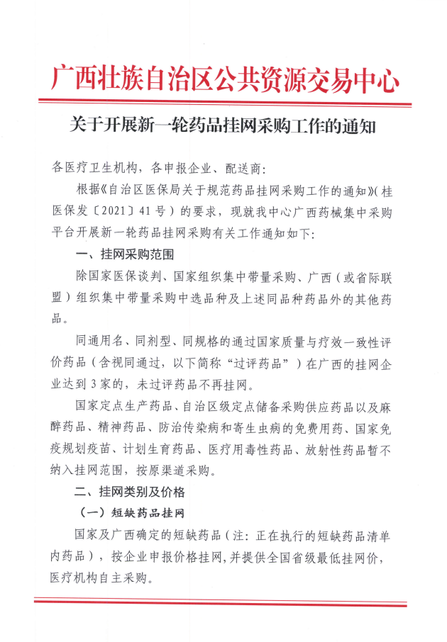 【广西】广西壮族自治区关于开展新一轮药品挂网采购工作的通知