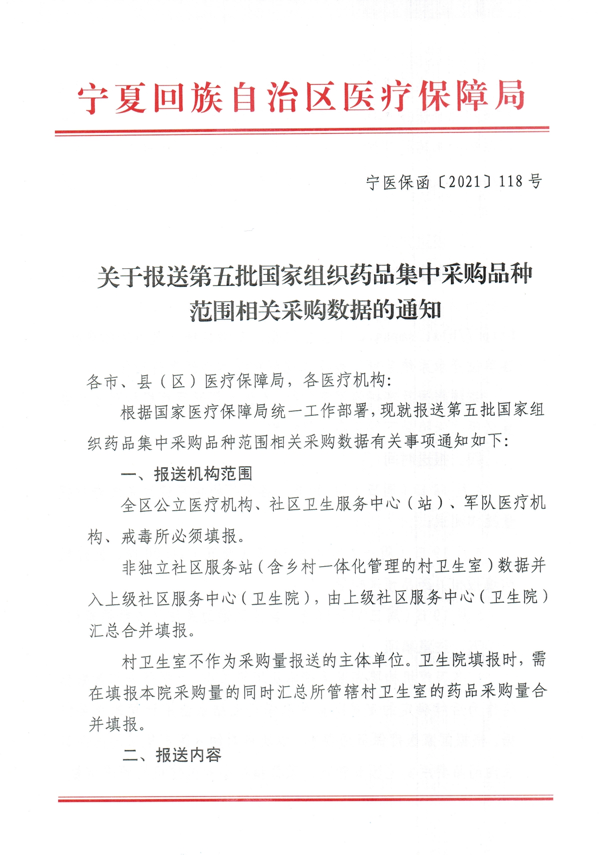 【宁夏】2021年宁夏自治区转发《关于报送第五批国家组织药品集中采购品种范围相关采购数据的通知》