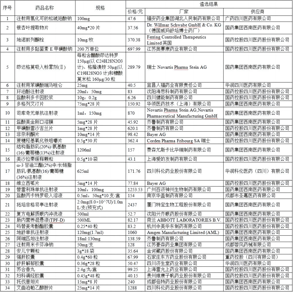 【成都市第七人民医院】四川省成都市第七人民医院新进院药品厂家遴选结果公告(20241122)