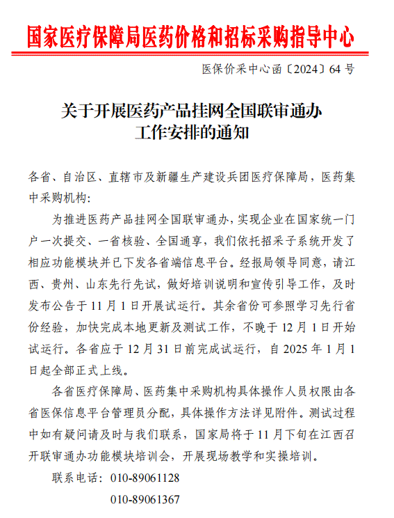 【国家】国家医疗保障局关于开展医药产品挂网全国联审通办工作安排的通知