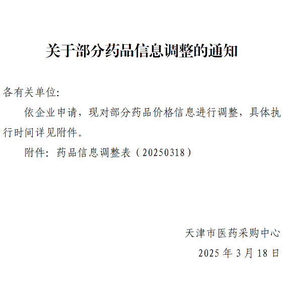 【天津】天津市关于部分药品信息调整的通知(20250318)