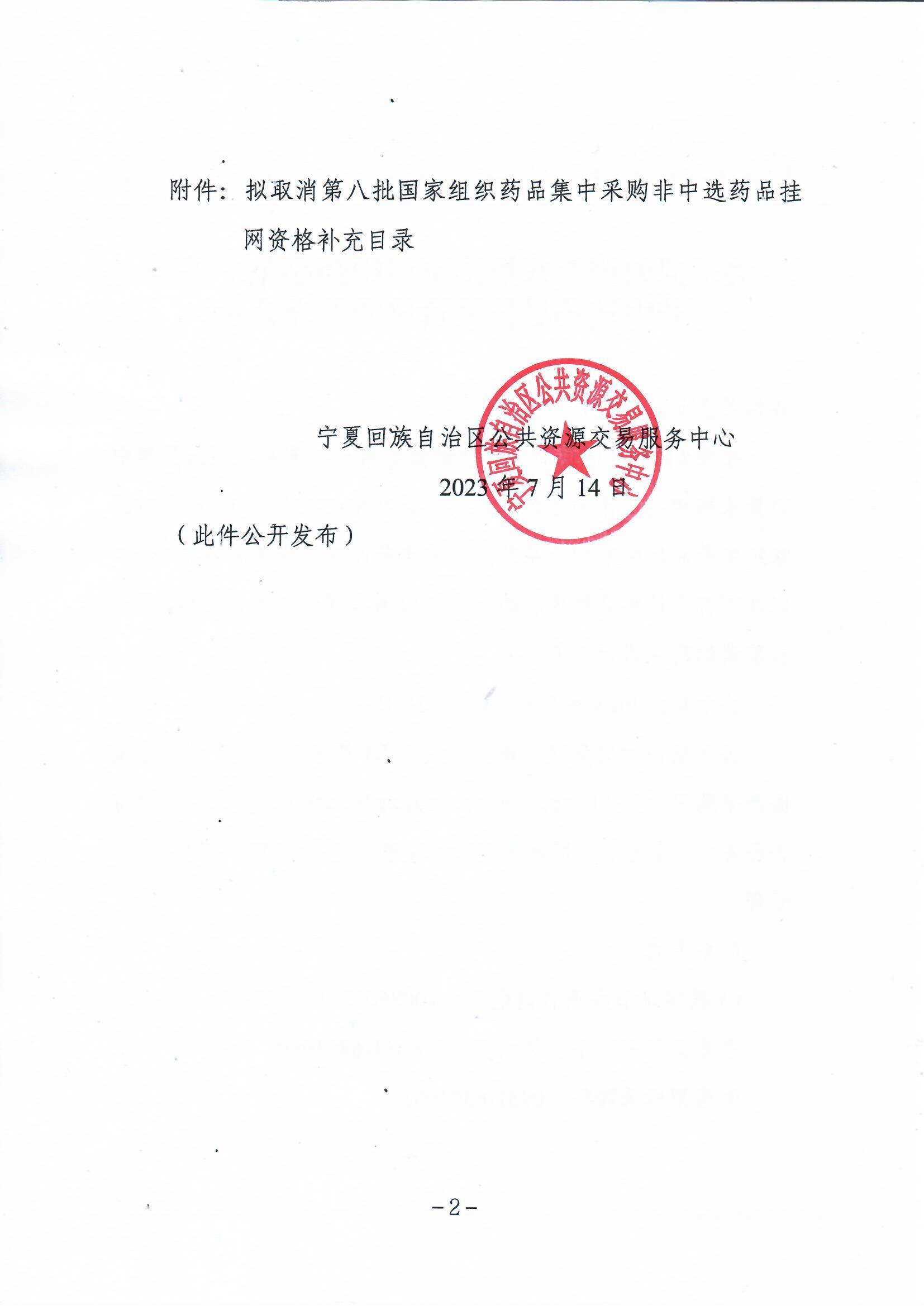 按照《自治区医保局关于商请做好第八批国家组织药品集中带量采购相关工作的函》文件要求,我中心在7月10日已对国家组织药品集中采购药品范围非中选药品未提交价格调整申报,以及不符合价格调整要求的药品拟取消挂网资格进行公示,现对拟取消的药品进行补充公示。