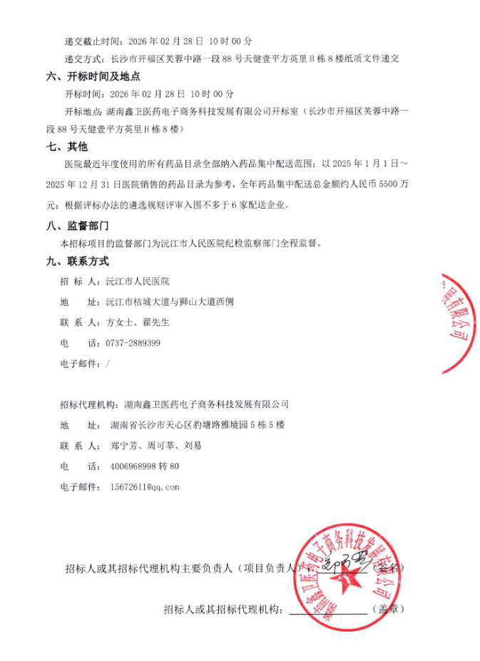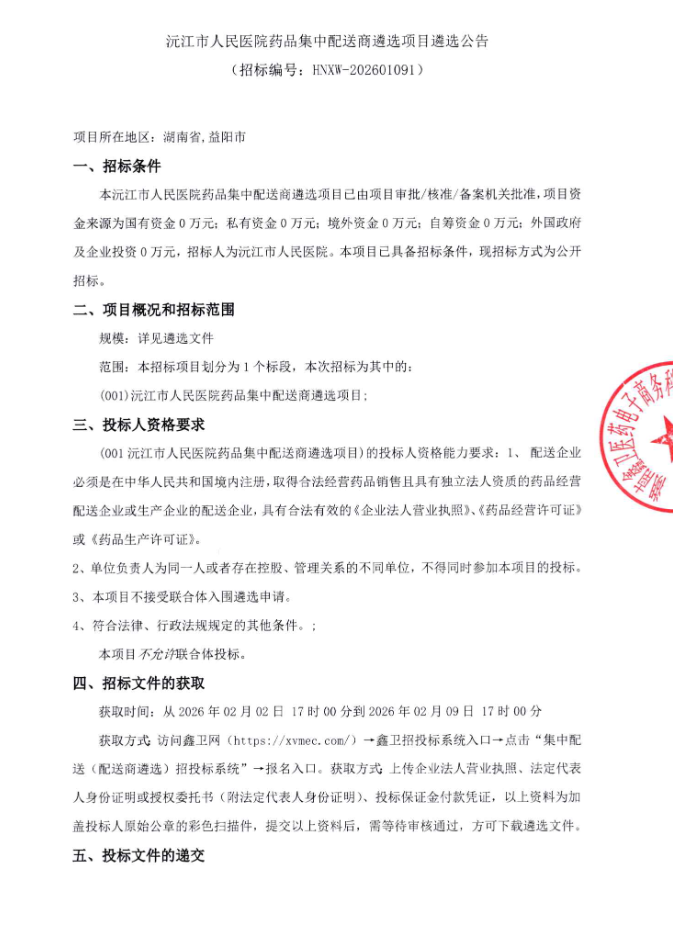 【益阳市沅江市人民医院】湖南省沅江市人民医院药品集中配送商遴选项目遴选公告