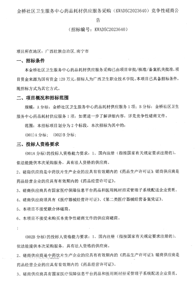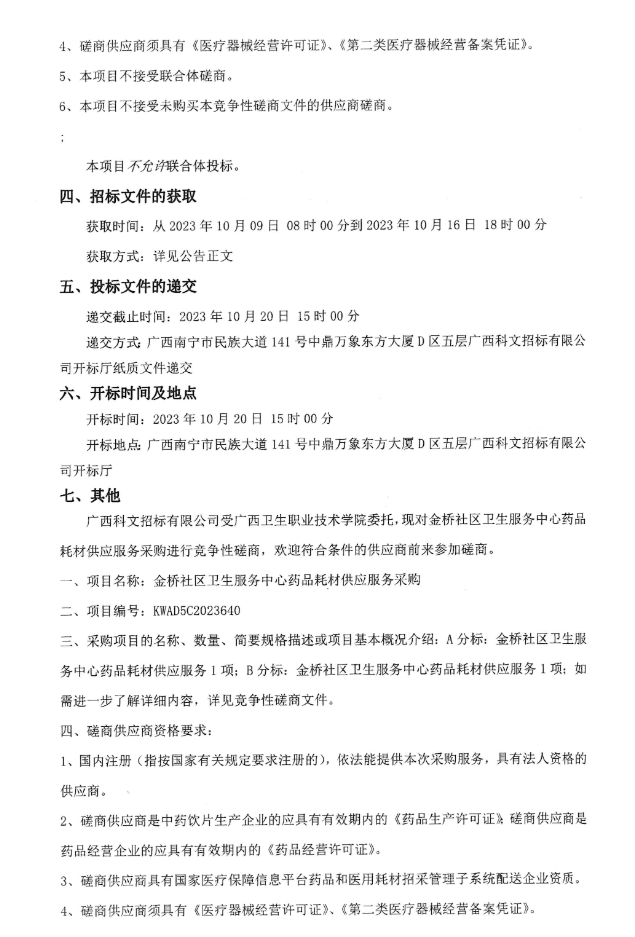 【成都市双流区金桥社区卫生服务中心】四川省成都市双流区金桥社区卫生服务中心药品耗材供应服务采购(KWAD5C2023640)竞争性磋商公告