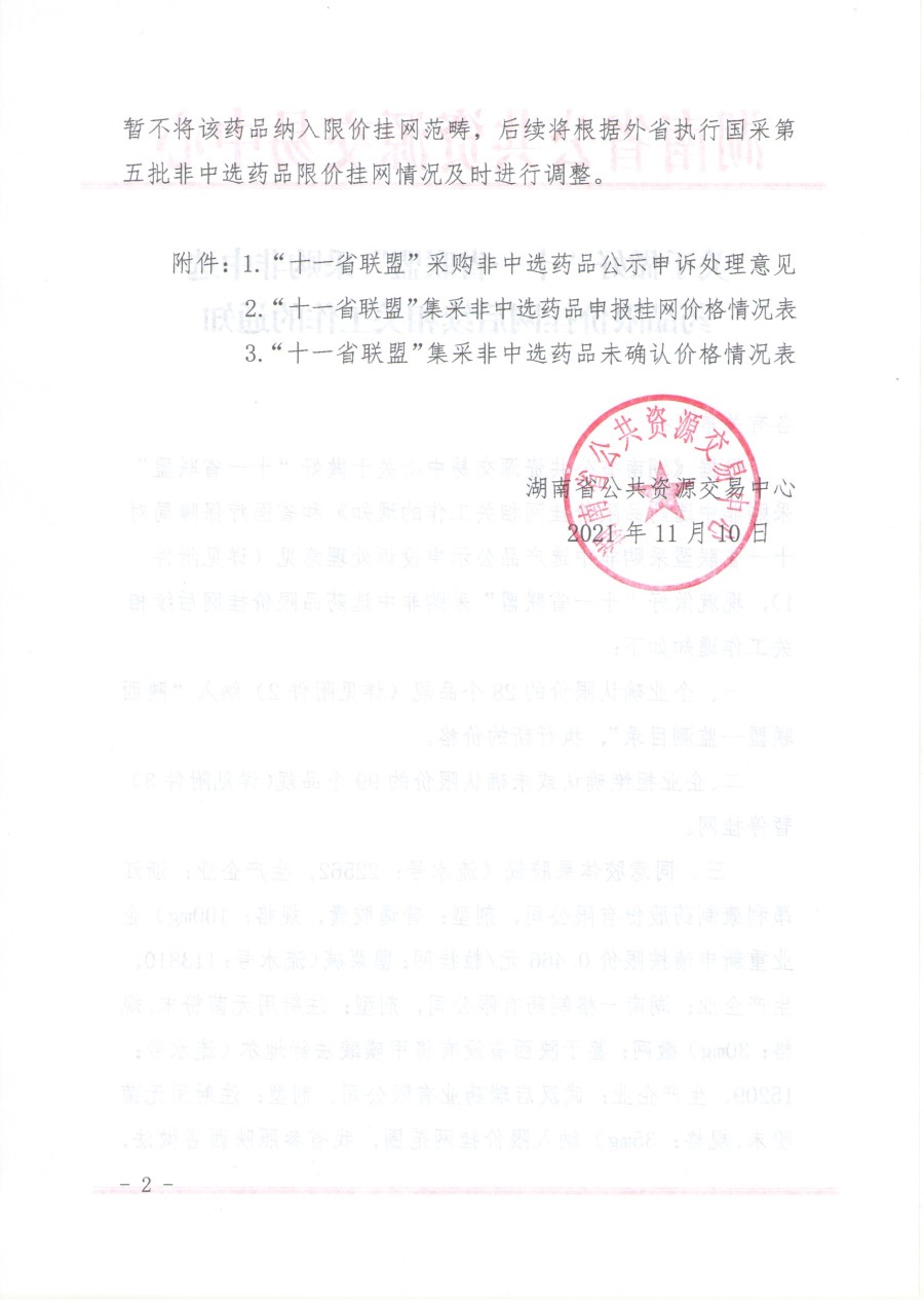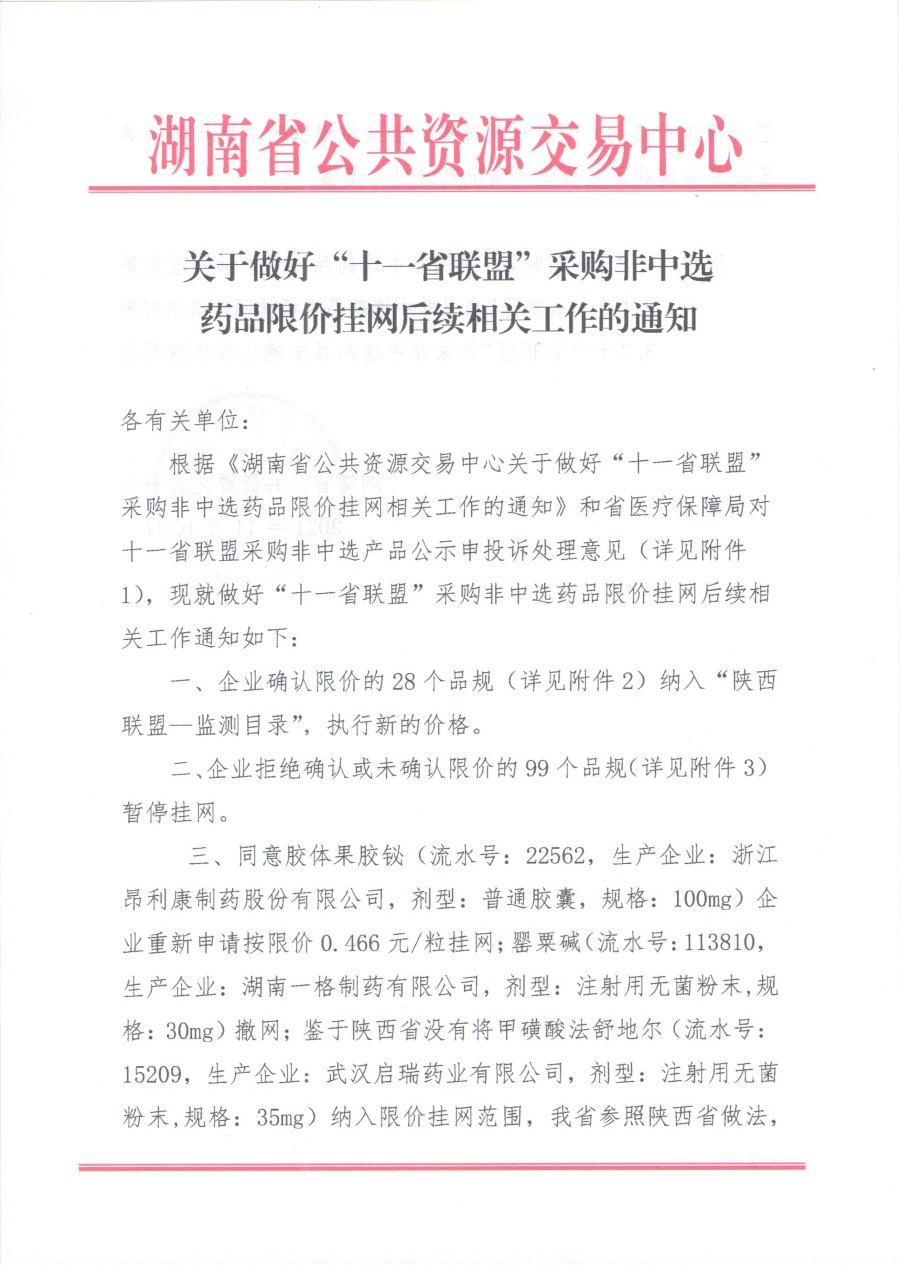 【湖南】2021年湖南省关于做好“十一省联盟”采购非中选药品限价挂网后续相关工作的通知