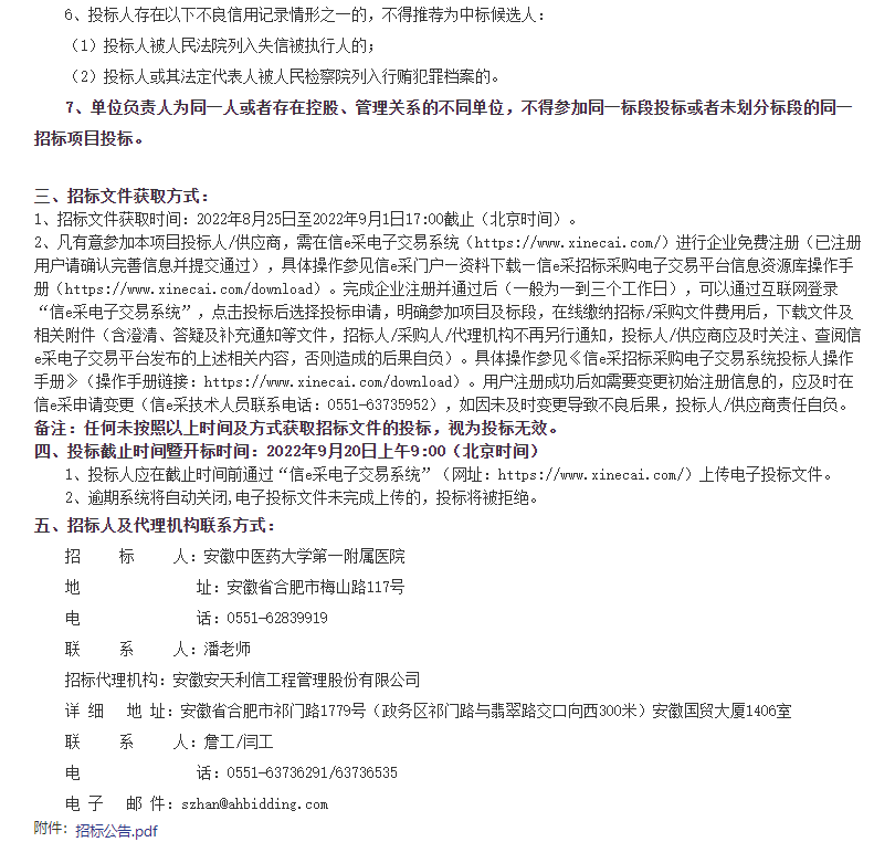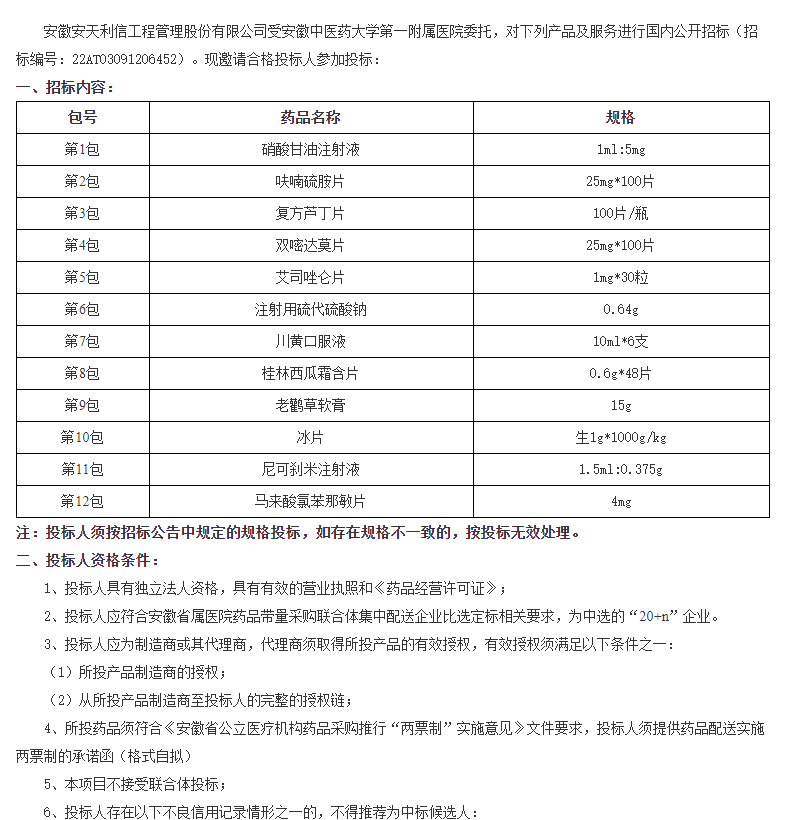 【安徽中医药大学第一附属医院】安徽中医药大学第一附属医院采购2022年部分药品(第一批)招标公告
