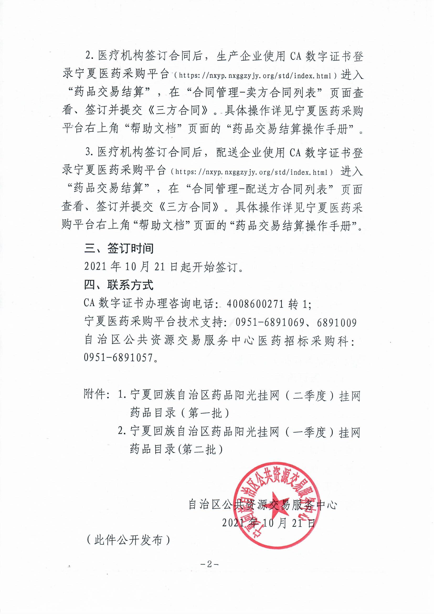 【宁夏】2021年宁夏自治区关于签订宁夏回族自治区(二季度)药品阳光挂网采购购销三方合同的通知