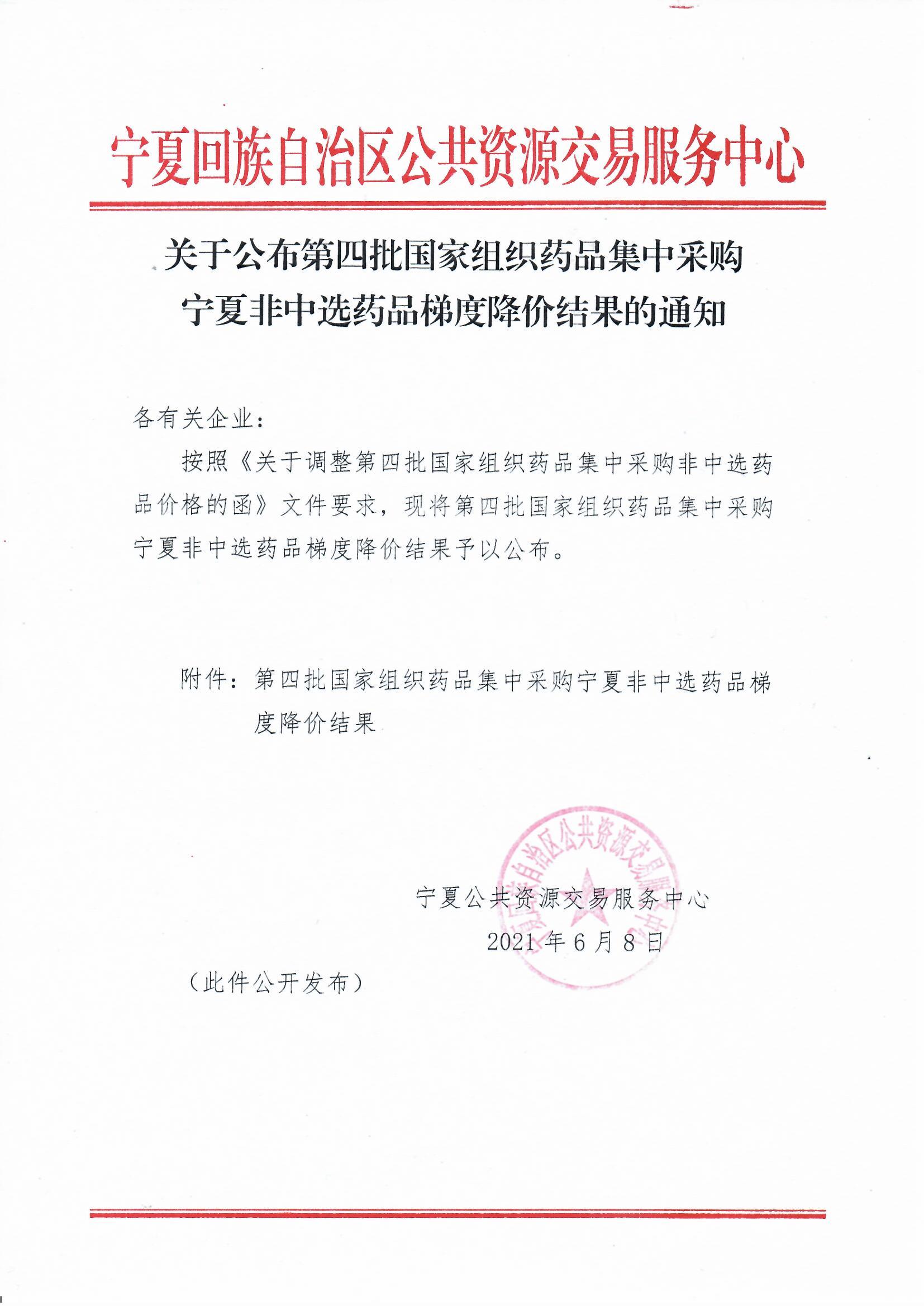 【宁夏】2021年宁夏自治区关于公布第四批国家组织药品集中采购宁夏非中选药品梯度降价结果的通知