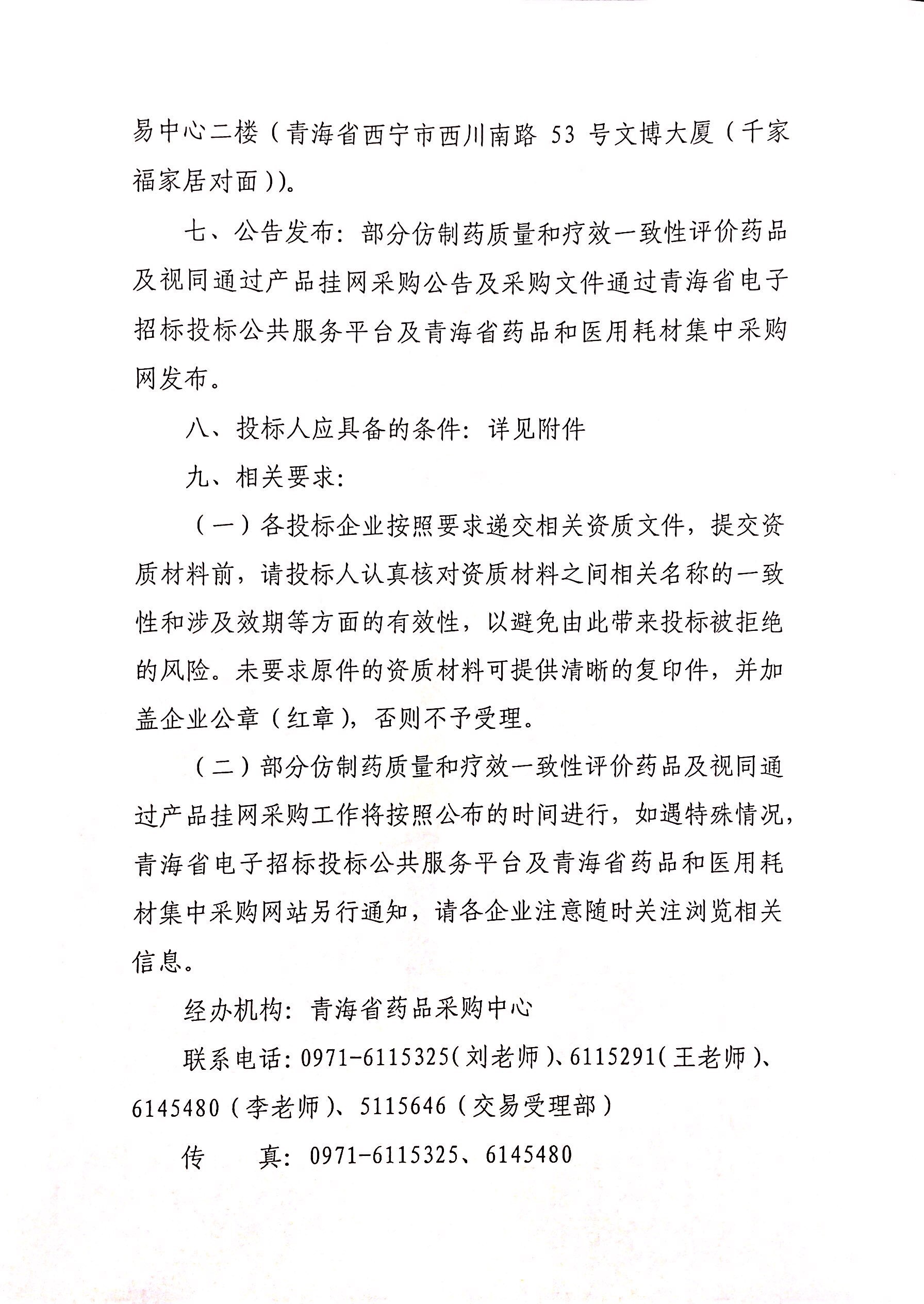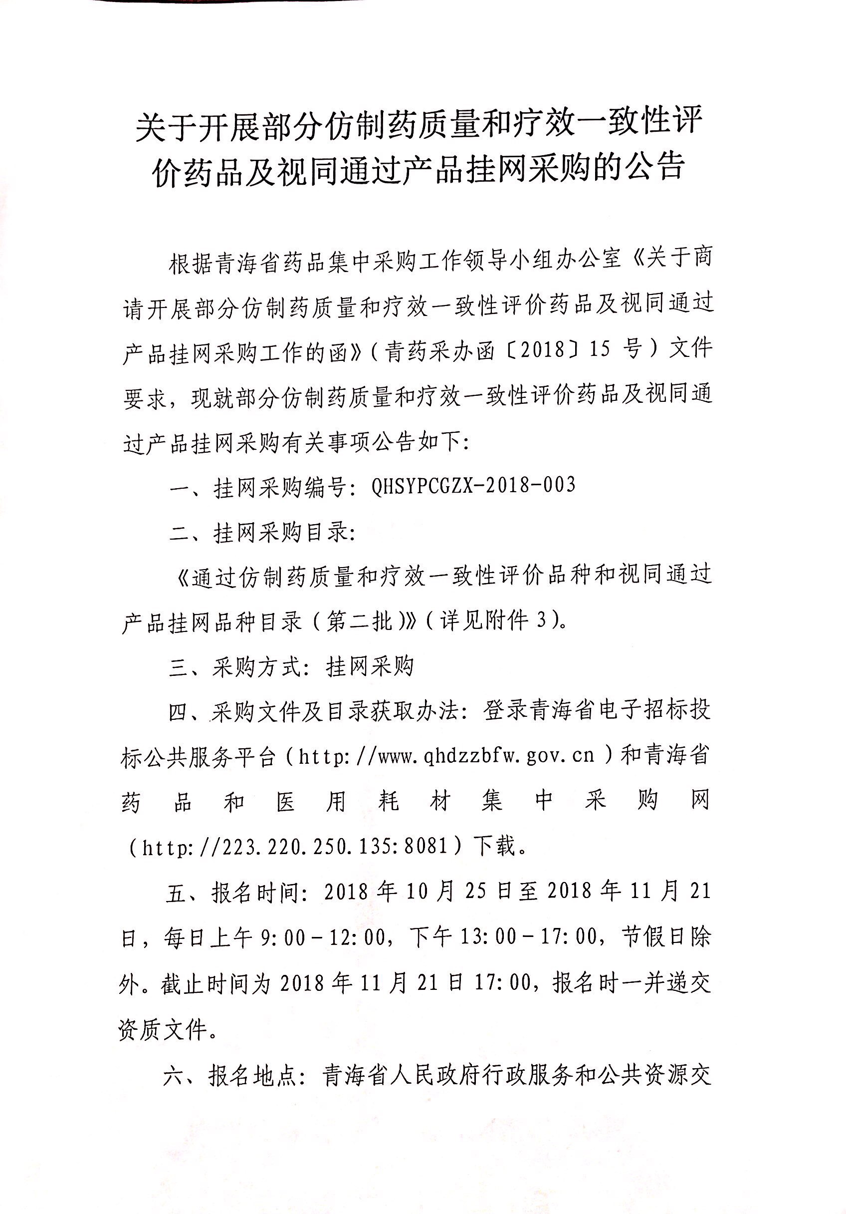 【青海】关于开展部分仿制药质量和疗效一致性评价药品及视同通过产品挂网采购的公告