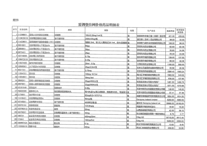 【湖南】2021年湖南省关于部分药品挂网价格调整的公示