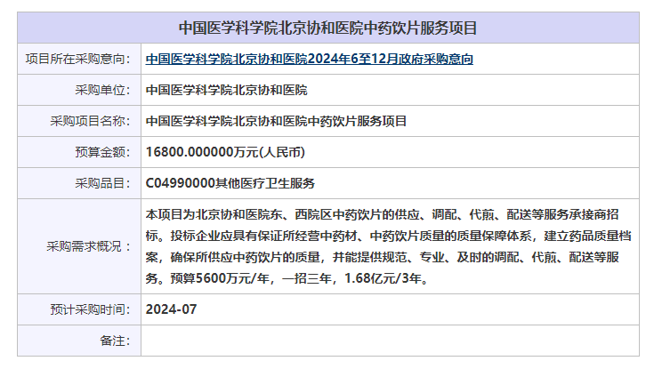【中国医学科学院北京协和医院】中国医学科学院北京协和医院2024年6至12月政府采购意向