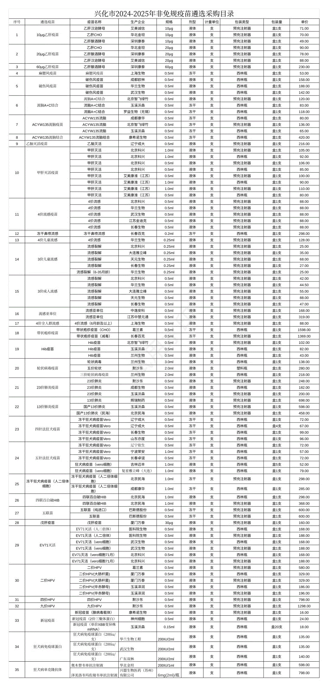 【泰州】兴化市2024—2025年非免规疫苗遴选采购目录公示