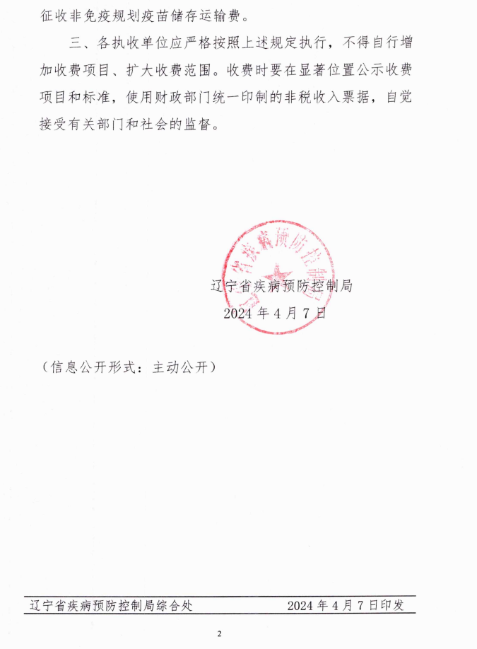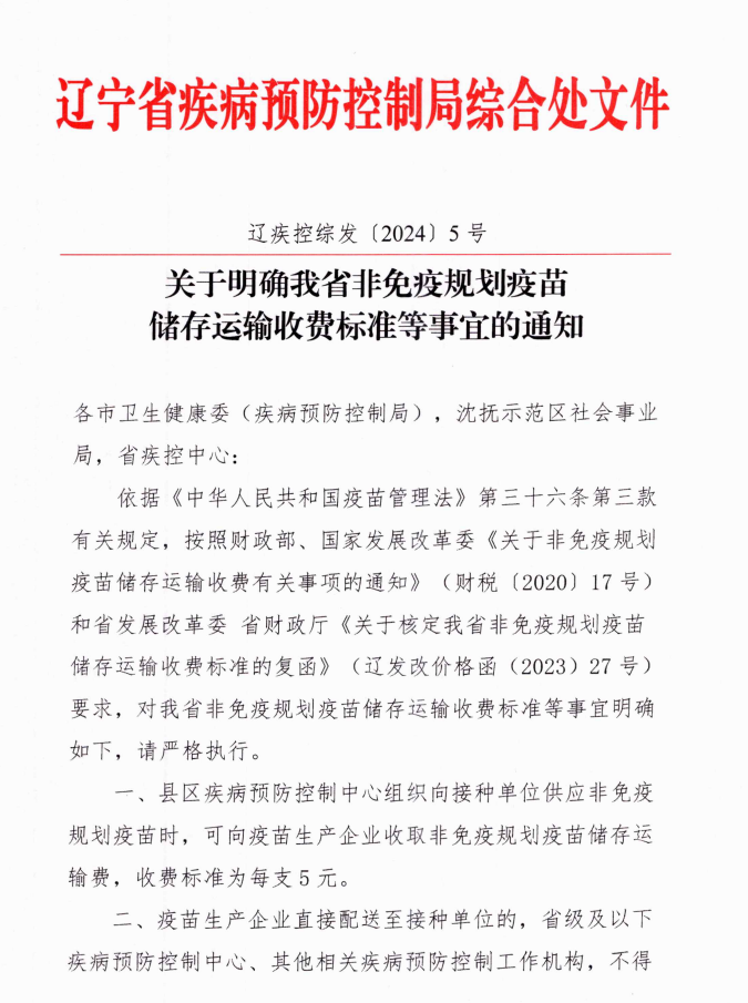 【辽宁】关于明确我省非免疫规划疫苗储存运输收费标准等事宜的通知