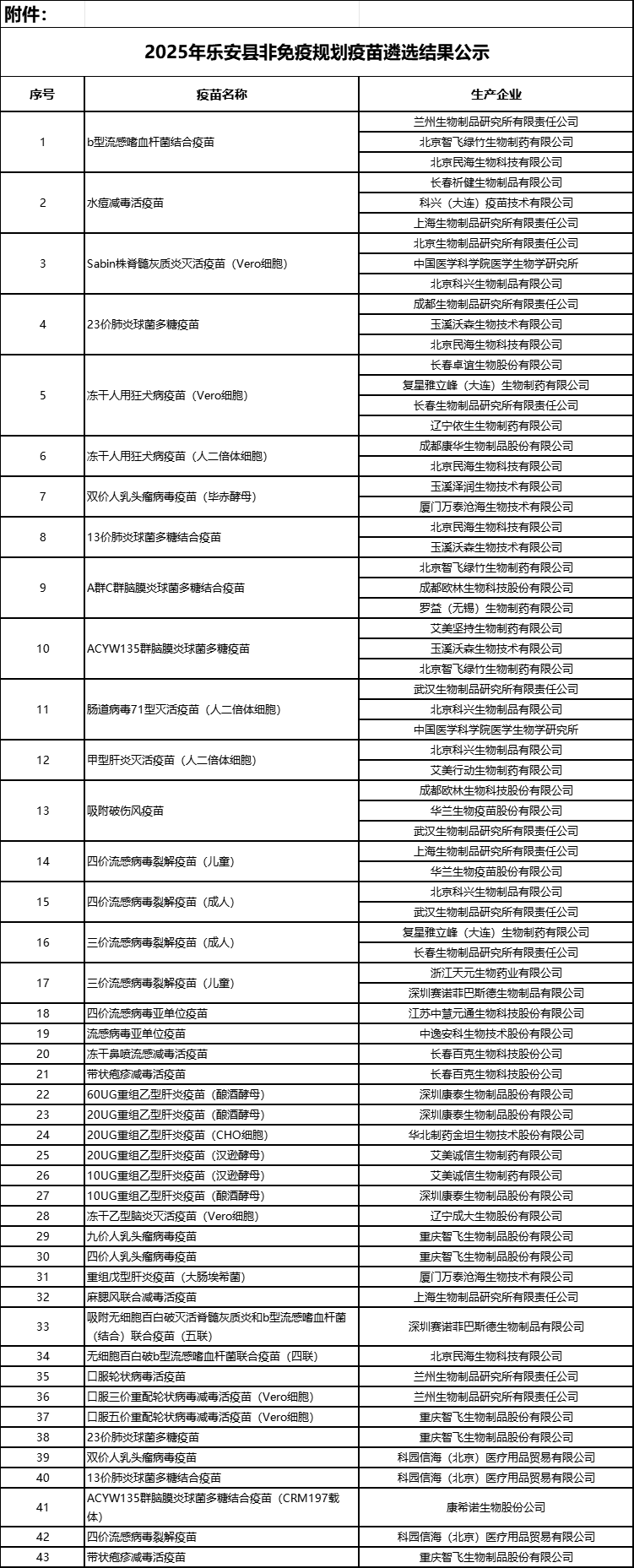 【抚州】关于2025年乐安县非免疫规划疫苗遴选结果的公示