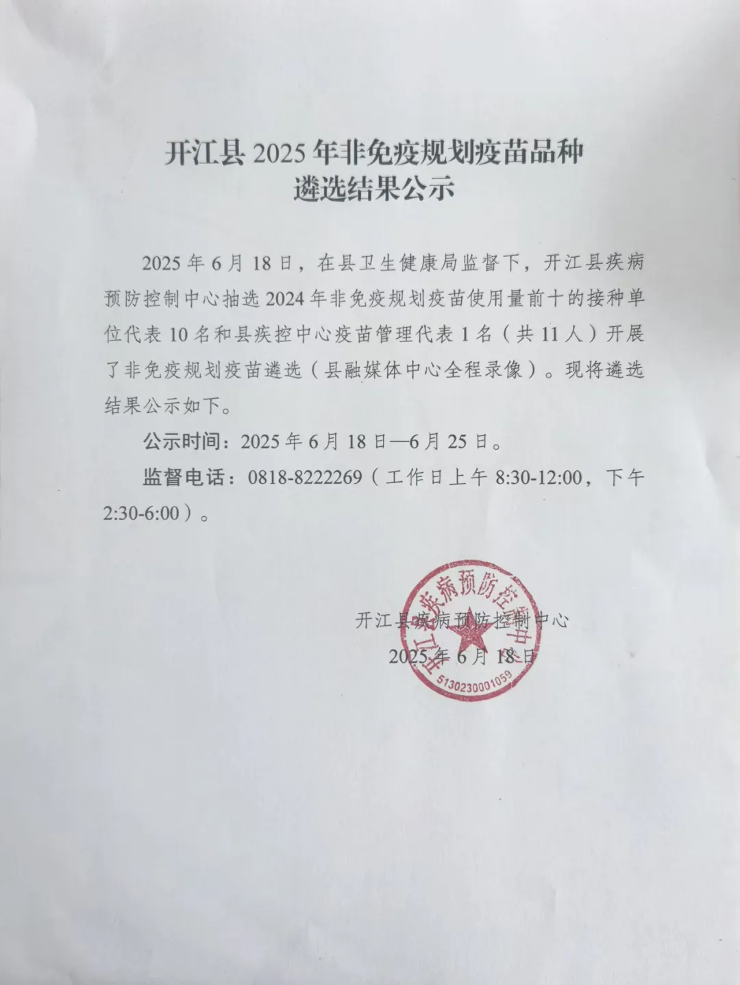 【达州】开江县2025年非免疫规划疫苗品种遴选结果公示