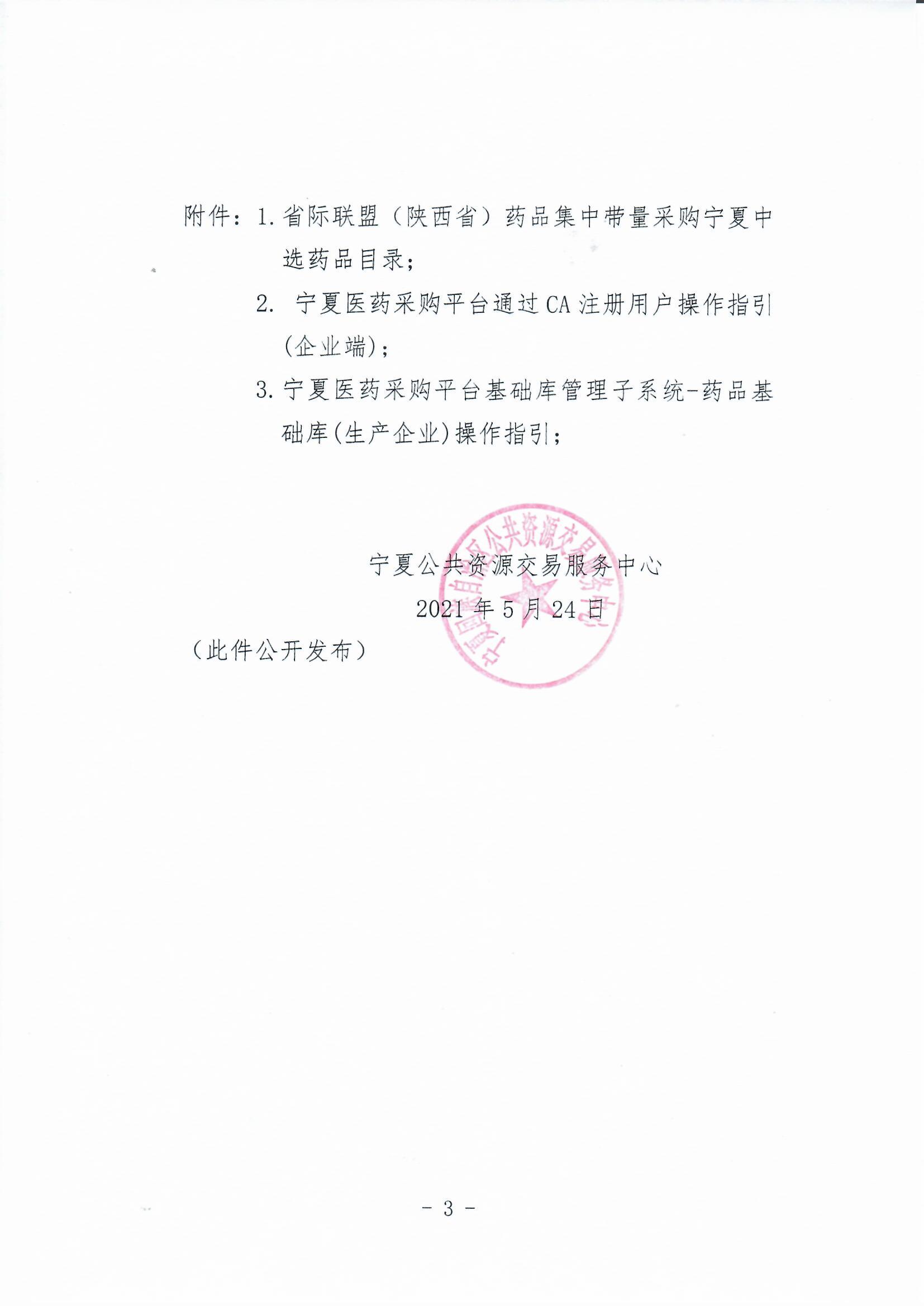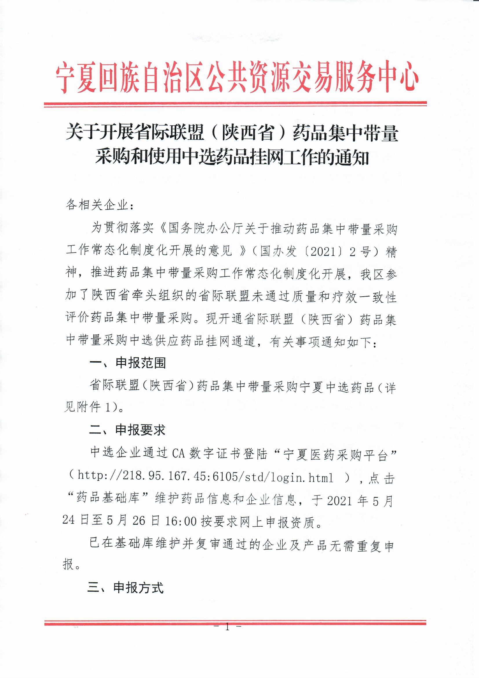 【宁夏】2021年宁夏自治区关于开展省际联盟药品集中带量采购和使用第一批中选药品挂网工作的通知