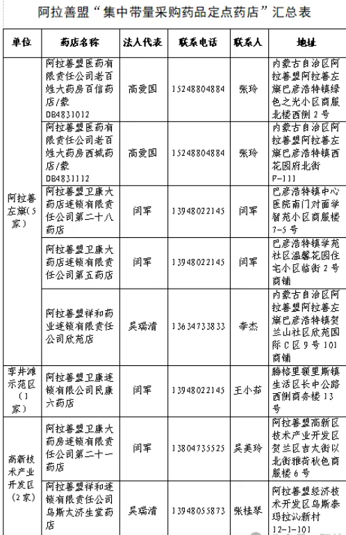 【阿拉善】阿拉善盟医疗保障局关于“集采药品进药店”药品目录的公示