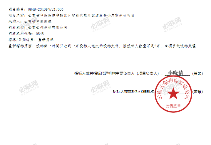 【云南省中医医院】云南省中医医院中药饮片智能代煎及配送服务供应商招标项目终止公告