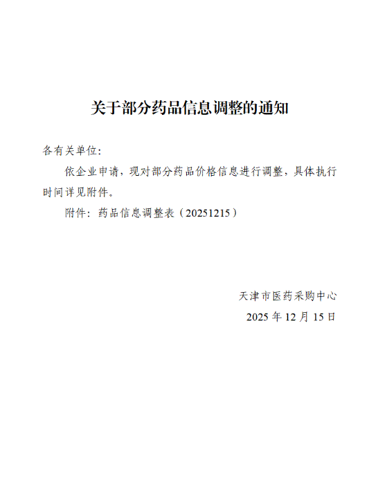 【天津】天津市关于部分药品信息调整的通知(20251215)