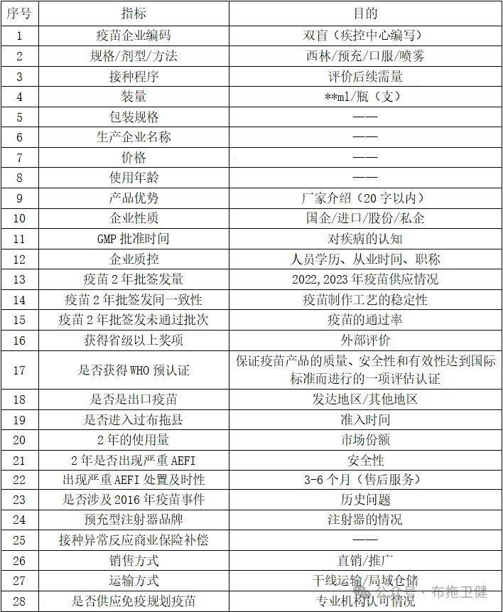 2024年布拖县非国家免疫规划疫苗遴选指标