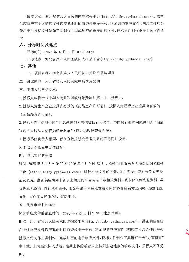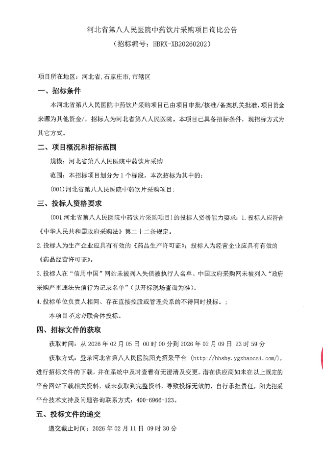 【河北省第八人民医院】河北省第八人民医院中药饮片采购项目询比公告
