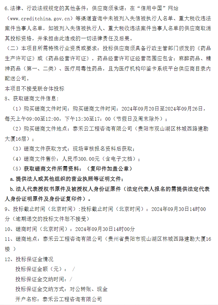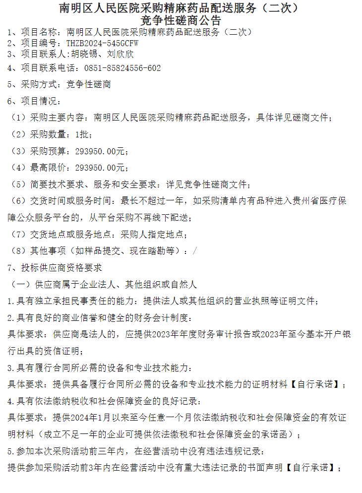 【贵阳市南明区人民医院】贵州省贵阳市南明区人民医院采购精麻药品配送服务(二次)竞争性磋商公告