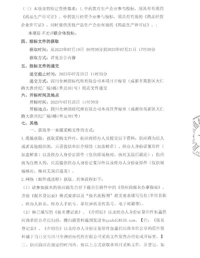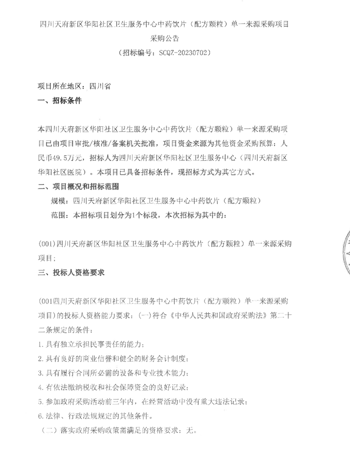 【成都市天府新区华阳社区卫生服务中心】四川省成都市天府新区华阳社区卫生服务中心中药饮片(配方颗粒)单一来源采购项目采购公告
