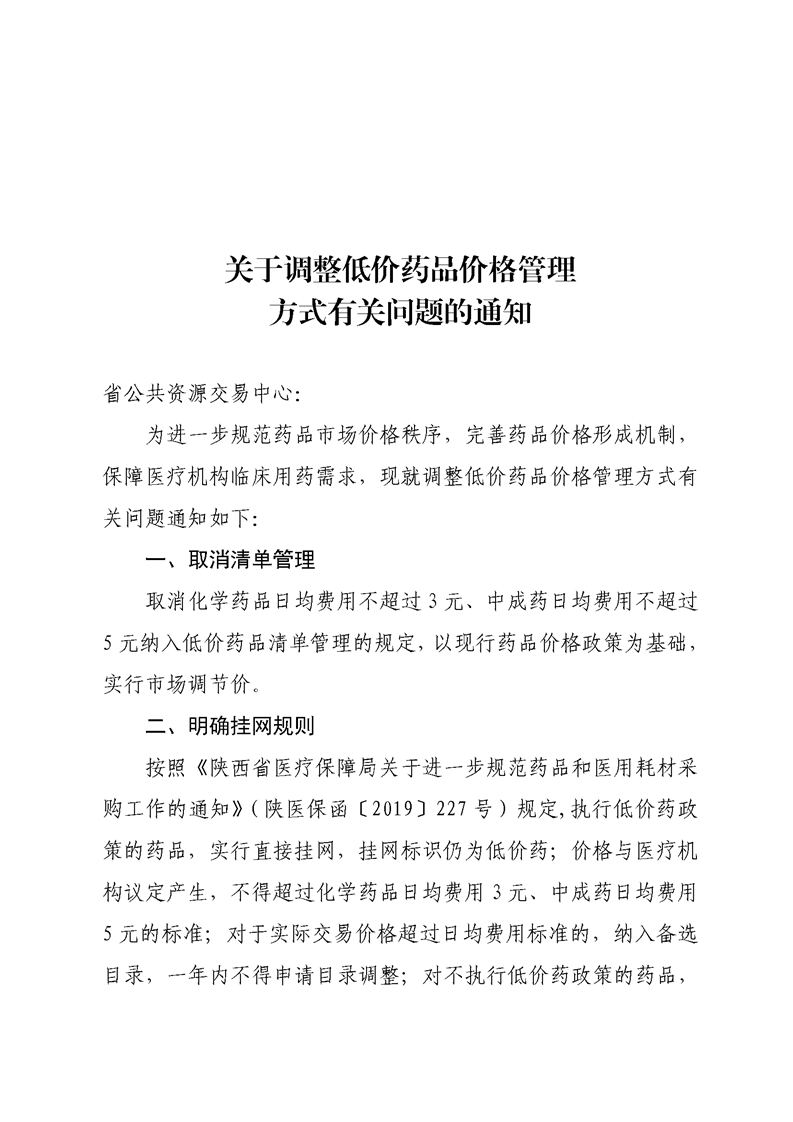 【陕西】陕西省关于调整低价药品价格管理方式有关问题的通知