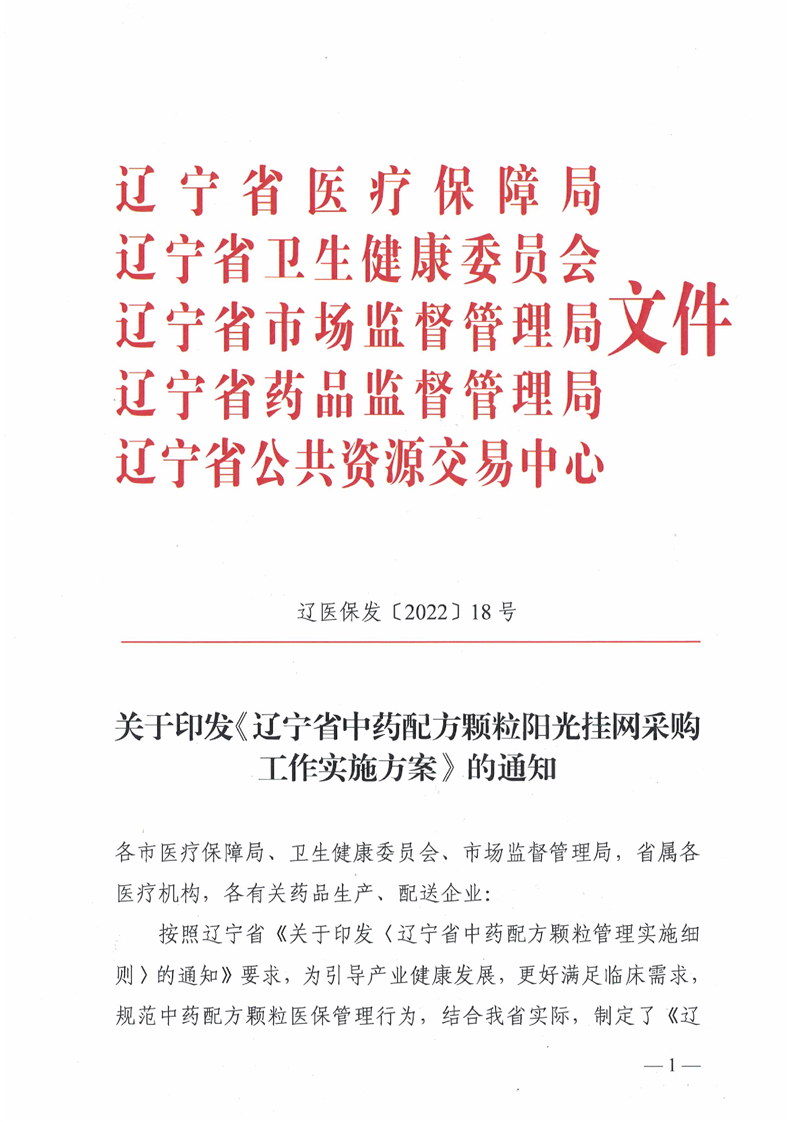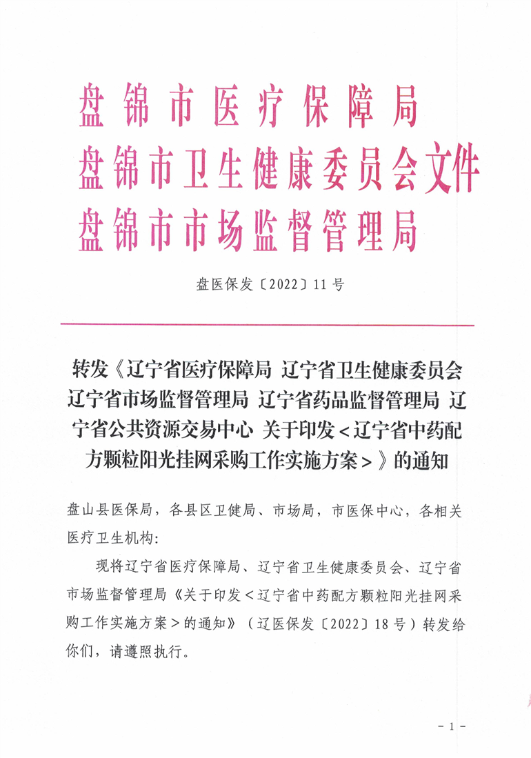 【盘锦】辽宁省盘锦市转发《关于印发辽宁省中药配方颗粒阳光挂网采购工作实施方案》的通知