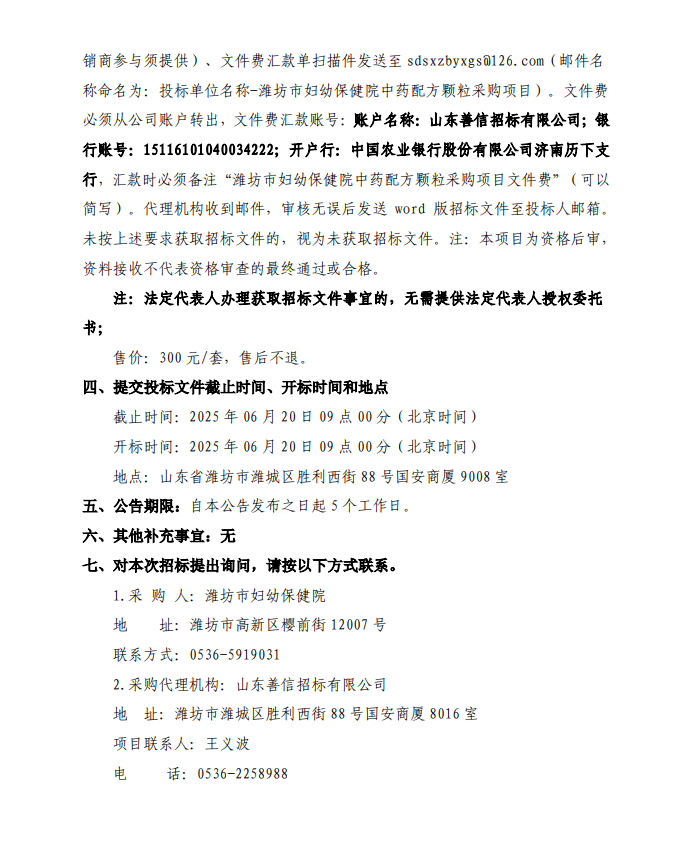 【潍坊市妇幼保健院】山东省潍坊市妇幼保健院中药配方颗粒采购项目招标公告