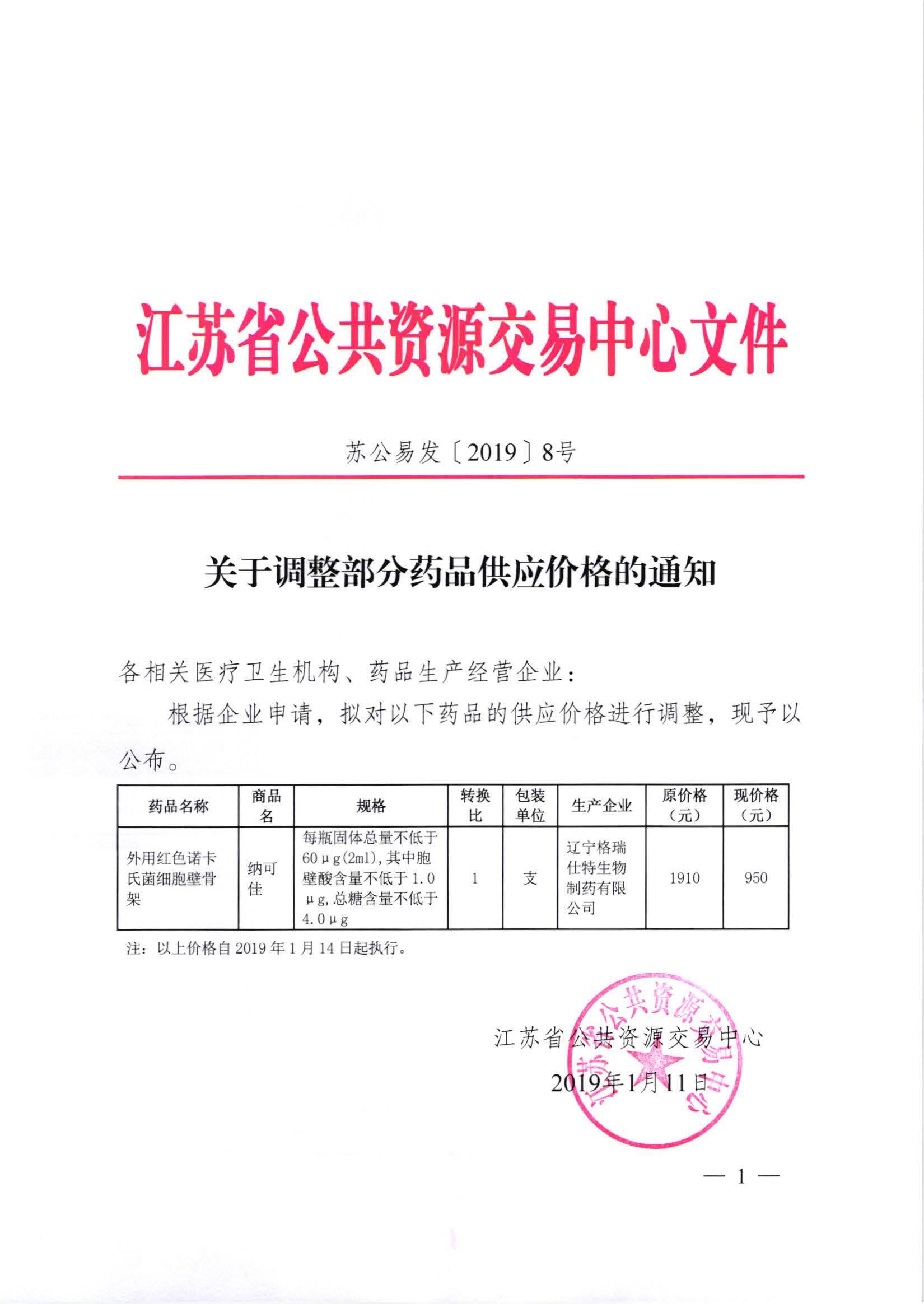 【江苏】江苏省关于调整部分药品供应价格的通知(20190111)