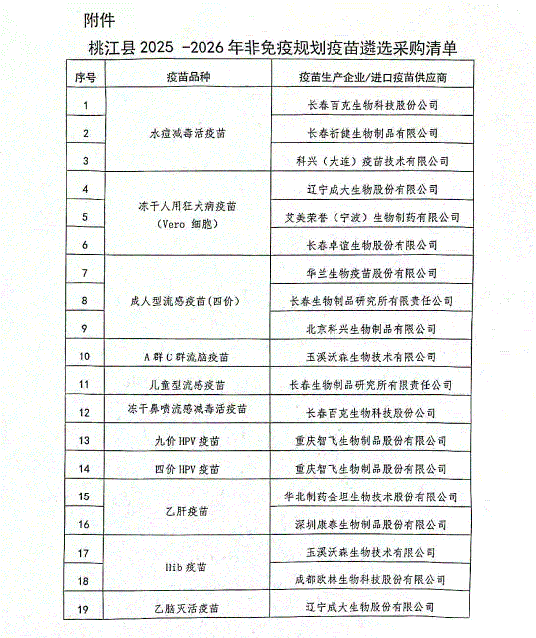 【益阳】关于桃江县2025-2026年非免疫规划疫苗遴选采购结果的公示