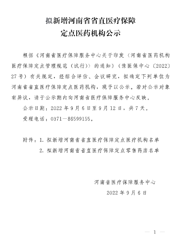 【河南】拟新增河南省省直医疗保障定点医药机构公示