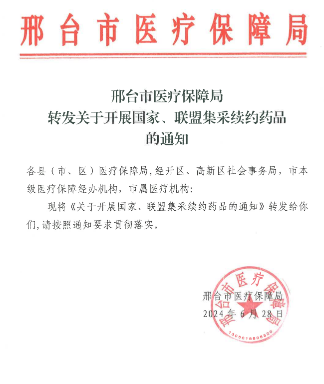 【邢台】邢台市医疗保障局转发关于开展国家、联盟集采续约药品的通知