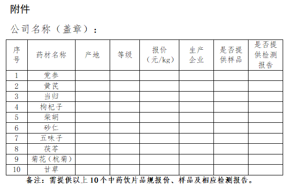 3.提供主要中药饮片品规报价、样品及检测报告(详见附件)。