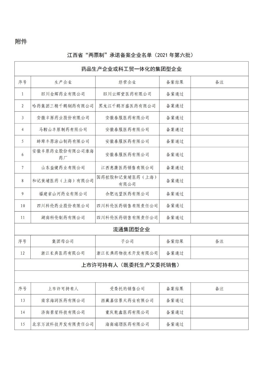 附件:江西省“两票制”承诺备案企业名单(2021年第六批)