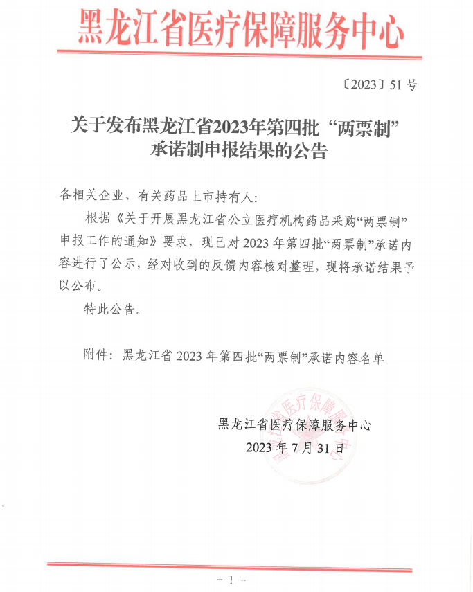 【黑龙江】关于发布黑龙江省2023年第四批“两票制”承诺制申报结果的公告