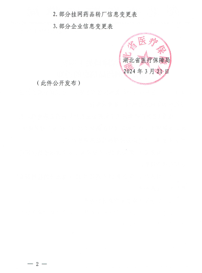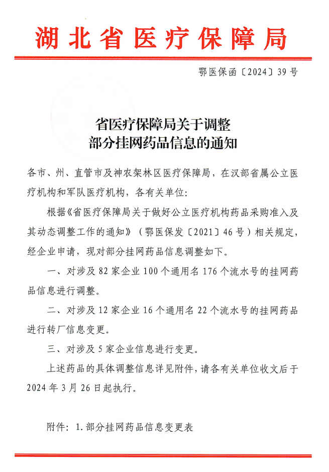 【湖北】省医疗保障局关于调整部分挂网药品信息的通知