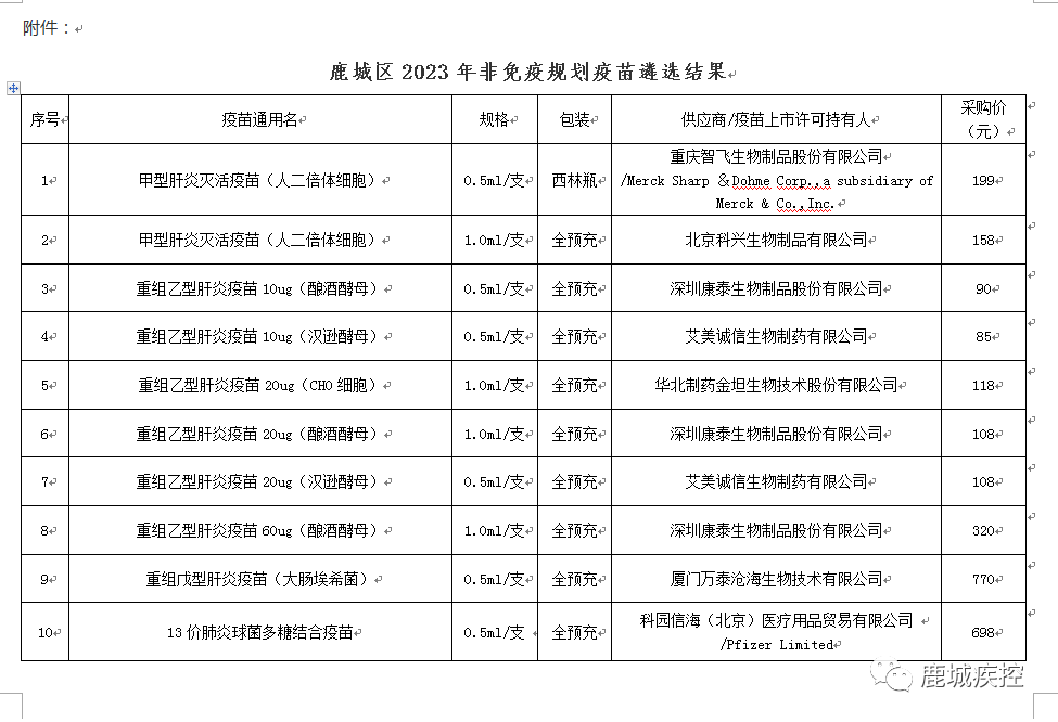 【温州】关于鹿城区2023年非免疫规划疫苗遴选结果的公示