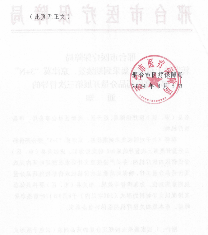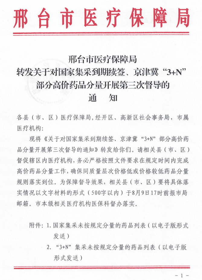 【邢台】邢台市医疗保障局转发关于对国家集采到期续签、京津冀“3+N’部分高价药品分量开展第三次督导的通知