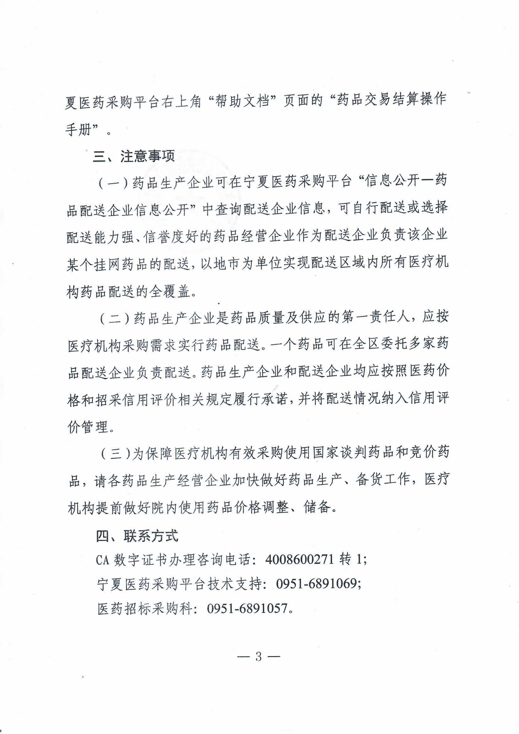 (三)为保障医疗机构有效采购使用国家谈判药品和竞价药品,请各药品生产经营企业加快做好药品生产、备货工作,医疗机构提前做好院内使用药品价格调整、储备。